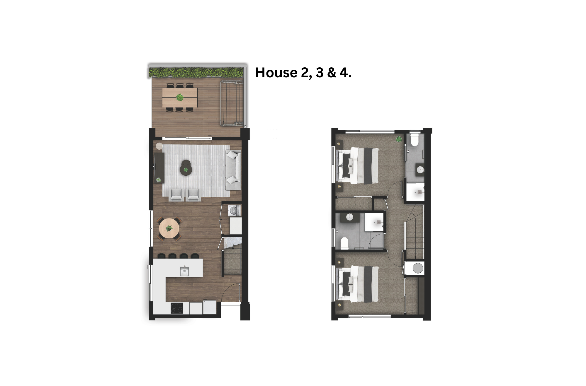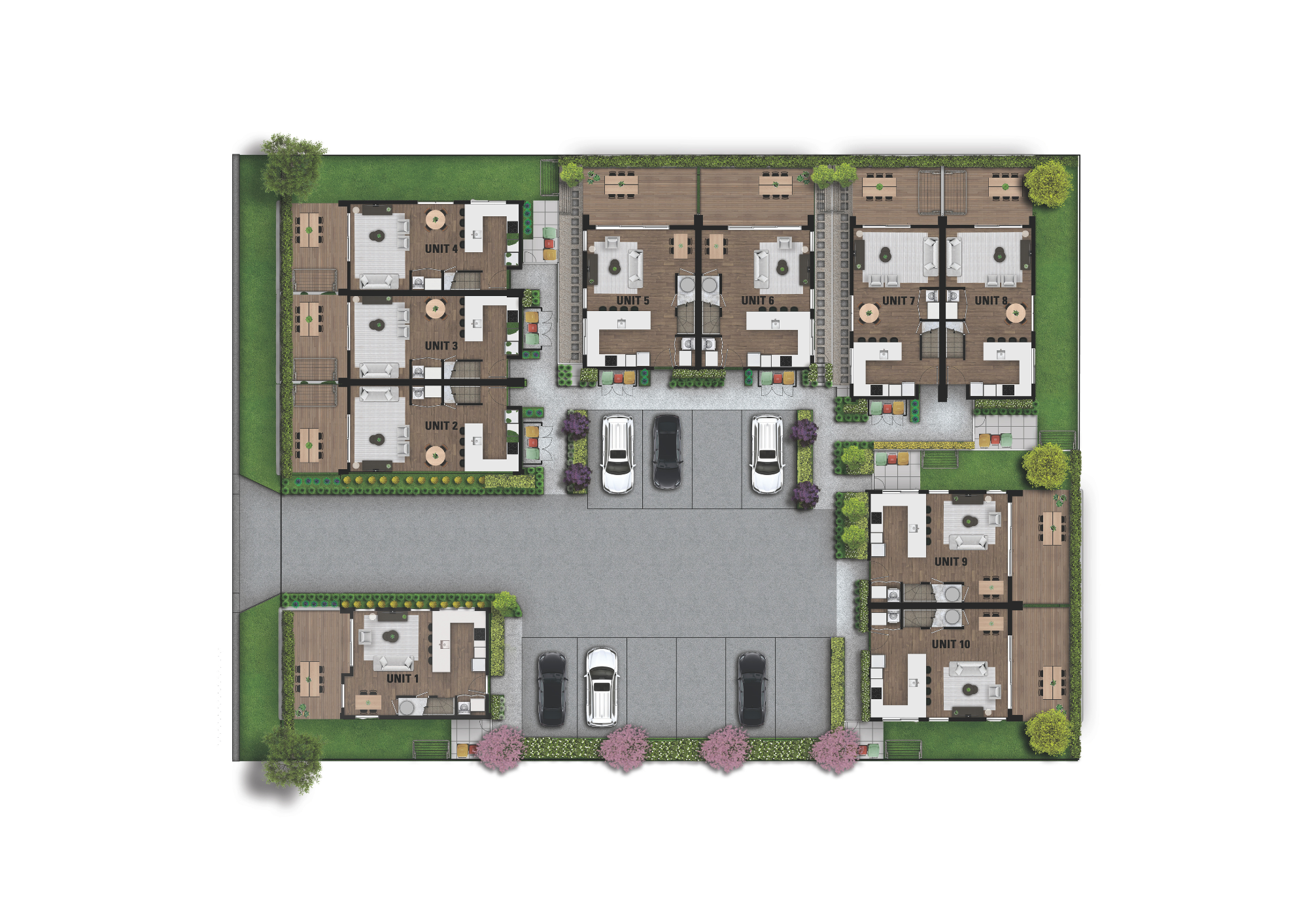 10 architecturally designed townhouses that all offer 2 bedrooms, 2 bathrooms and off-street parking